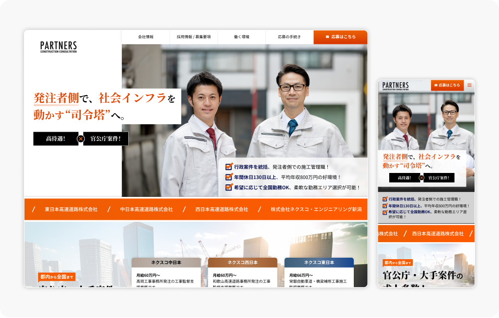エージェント依存を脱却する、建設コンサル特化型の採用ページ制作