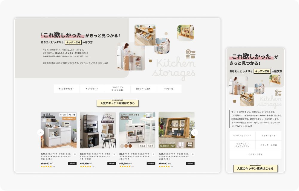 キッチン収納カテゴリのCV数を約7.6倍に拡大