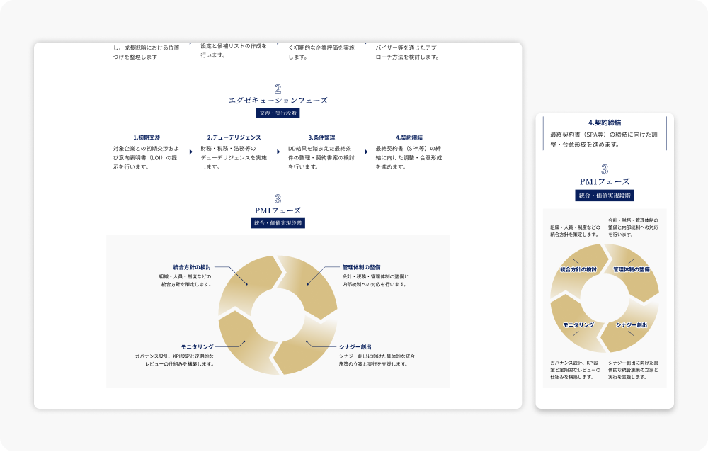 税務顧問、国際税務、M&A支援などのサービス内容を整理し、ユーザーが必要な情報にスムーズに辿り着ける構造へ再設計した。